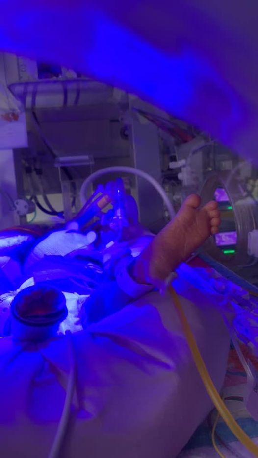 She’s still under her blue light for jaundice so here’s a gorgeous foot photo! Clearest picture I could get under the blue and she has the most amazing feet in the world!!! ![]()