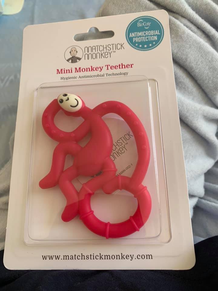 So once her UVC has gone all invasive tubes and needles will have been removed (she may need a cannula again at some point but for now she is free of it) Everyone is delighted especially me! The nurses all think she is wonderful and the doctors I think are very impressed with how well she is doing! She often has visitors pop by to check on her from midwives or staff on my ward who have heard her story! Bought her a little red teething monkey.. though her hands are clenched she likes grabbing wires and tugging at them so this gives her something to hold.. she seems to like it once I fold her little fingers around it. I should be getting a scan this afternoon as I have a hard lump near my c section scar which is very painful, they think probably nothing to worry about, possibly a haematoma but want to check it just in case. At least I don’t have to go far!! Having a rest now and hoping they take me for my scan soon before I get Amber back in my arms! I don’t want interrupting! I’m glad it’s getting checked though as it’s been bothering me and doesn’t seem to be improving, if I move the wrong way it feels like a knife going in ![]()